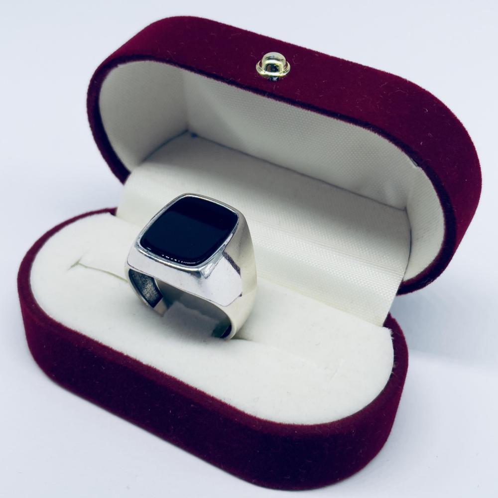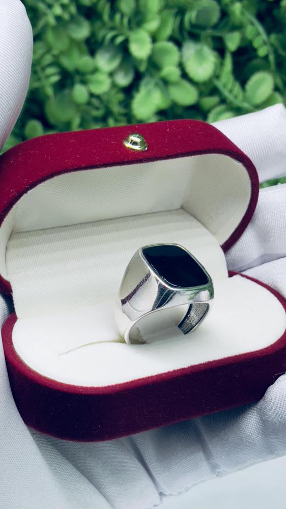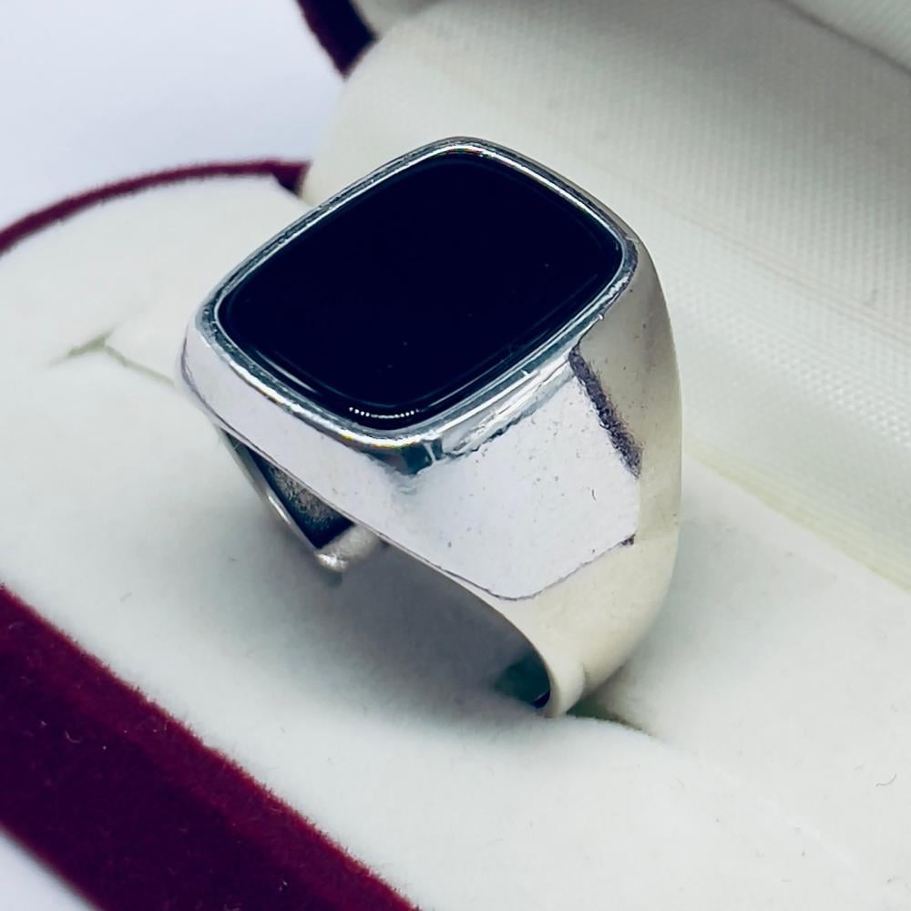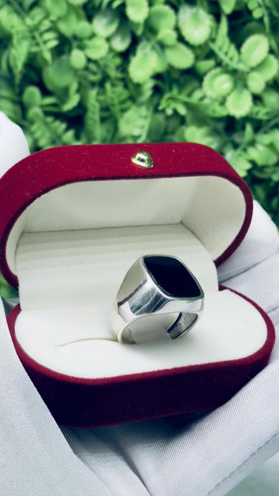 خاتم فضة اسود، يجسد البساطة المترفة بتصميمه الكلاسيكي الهادئ، بحجر الأونكس المستطيل الذي يعطيه لمسة فخمة تتماشى مع الذوق الرجالي الراقي. مثالي للاطلالات اليومية والرسمية.