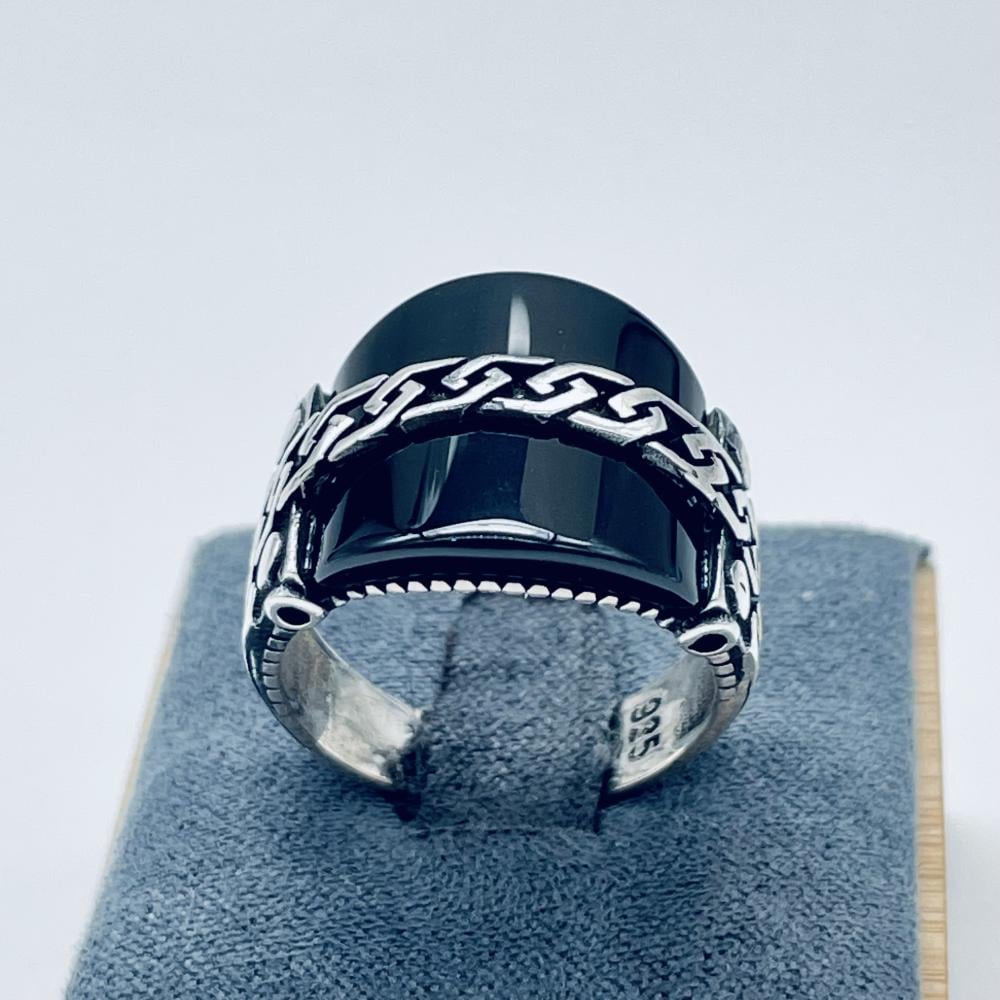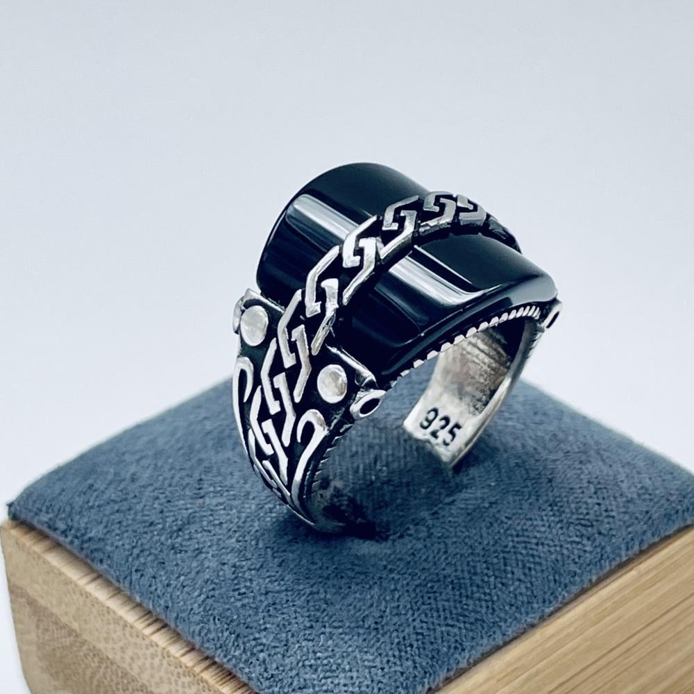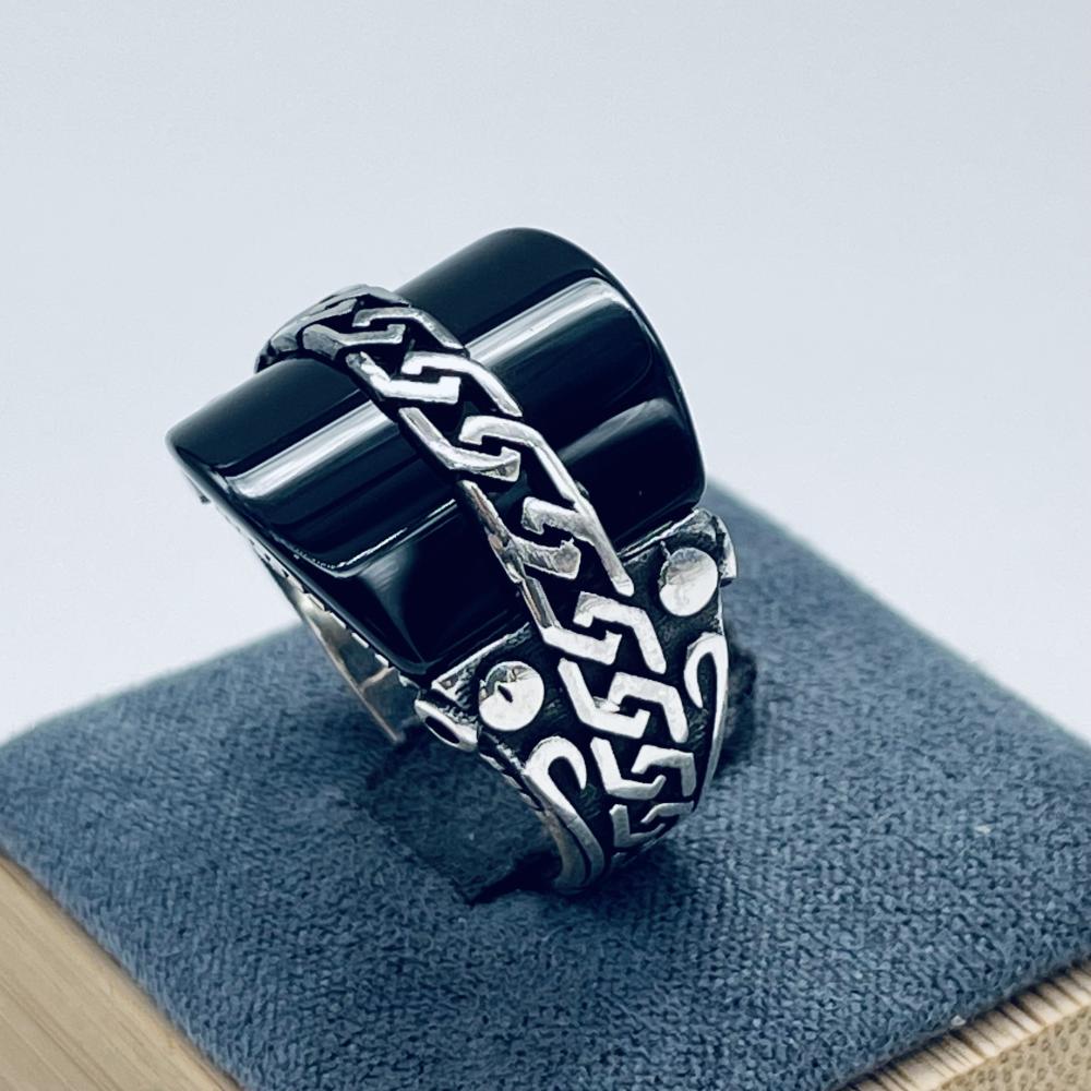 خاتم فضة تركي عيار 925 بحجر أونكس أسود - فخامة وأناقة لكل المناسبات