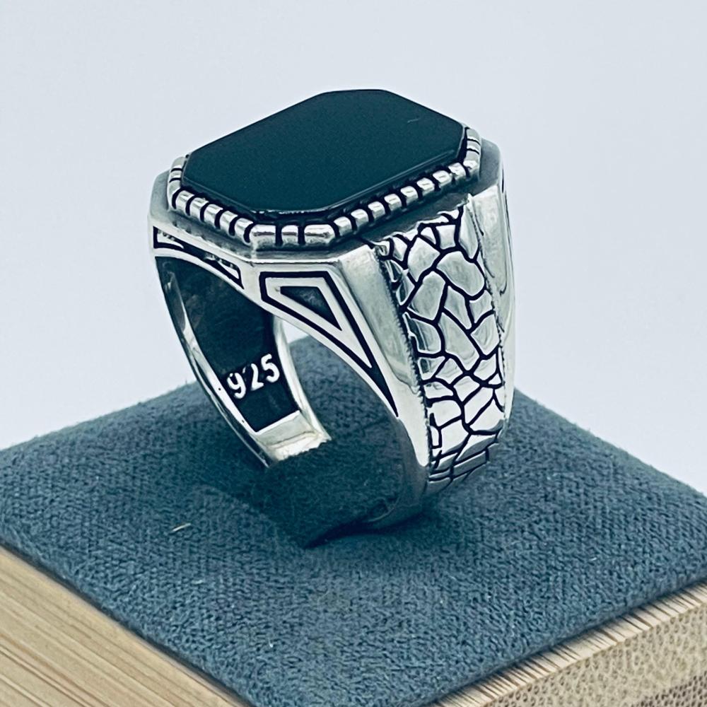 يعتبر حجر الأونكس رمزاً للقوة والتوازن، مما يجعله الخيار المثالي لمن يبحثون عن إكسسوار يجمع بين الجمال والرمزية العميقة. سواء كنت تبحث عن خاتم يومي يعكس شخصيتك المميزة أو قطعة أنيقة للمناسبات الخاصة، فإن هذا الخاتم يعد إضافة رائعة لأي مجموعة مجوهرات.