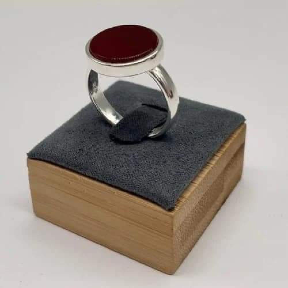 خاتم أحمر ، مصنوع من الفضة النقية بعيار 925، التي تمتاز بجودتها العالية ومتانتها. الحجر الذي يتوسط الخاتم هو من الأونكس، بلونه الأحمر اللامع الذي يلتقط الأنظار بطريقة ساحرة.